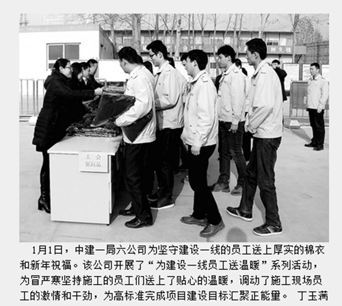 本网讯 1月5日《河北经济日报》刊登图片新闻《中文成人视频 六公司为一线建设员工送温暖》,文章内容及链接如下://paper.hbjjrb.com/html/2016-01/05/content_224861.htm 1月1日,中文成人视频 六公司为坚守建设一线的员工送上厚实的棉衣和新年祝福。该公司开展了“为建设一线员工送温暖”系列活动,为冒严寒坚持施工的员工们送上了贴心的温暖,调动了施工现场员工的激情和干劲,为高标准完成项目建设目标汇聚正能量。