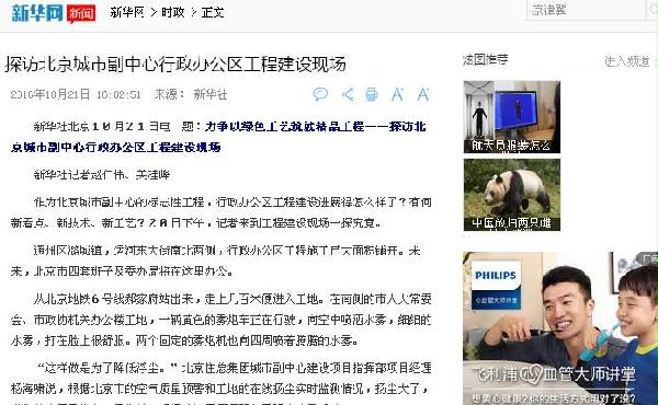 北京城市副中心项目并进行报道,40余家媒体转载。内容及部分链接网址如下: